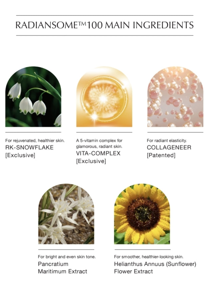 This shareable, 5-piece set contains travel sizes of the bestsellers from our Advanced Radiansome line, all packaged in an elegant giftbox featuring simple how-to instructions and product benefits!